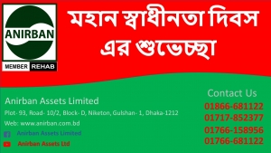 মহান স্বাধীনতা দিবস 4 years ago News & Event 0 অনির্বান এসেটস লিমিটেড এর পক্ষ থেকে সবাইকে স্বাধীনতা দিবসের শুভেচ্ছা।